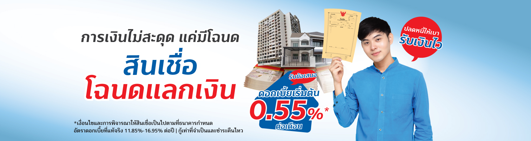 เมื่อมีปัญหาทางด้านการเงินติดขัด แต่ไม่รู้จะหาทางออกอย่างไร สินเชื่อโฉนดที่ดิน คืออีกหนึ่งทางเลือกของคนมีที่ดินเป็นของตัวเอง ที่ต้องการเงินก้อนมาหมุนเวียนแก้ไขปัญหา แต่หลายอาจจะไม่ยังไม่เข้าใจถึงสินเชื่อประเภทนี้ดีไหม วันนี้เราจะมาอธิบายถึงข้อดี รวมไปถึงประเภทของโฉนดที่ดินที่สามารถขอสินเชื่อได้ เพื่อให้ทุกคนเข้าใจได้แบบง่าย ๆ กันเอง